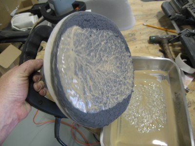 | Dip the "wooly" pad on your polisher into the walbernize.